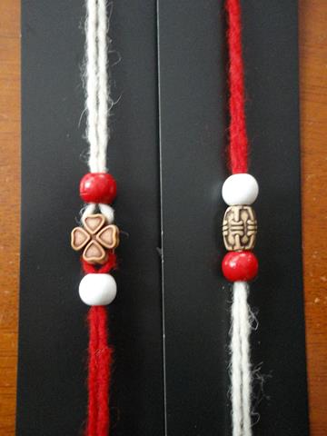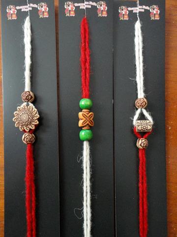 Гривни с вълнен конец и дървени мъниста